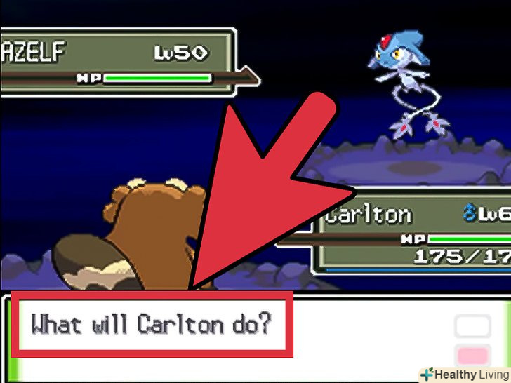 - Візьміть з собою покемона 1 рівня, бажано Ратату з Focus Sash і Endeavor і дайте противнику вдарити її. Завдяки навику Focus Sash, у Ратати залишиться всього 1 здоров'я. Після цього застосуйте Endeavor, щоб довести здоров'я противника до 1.
