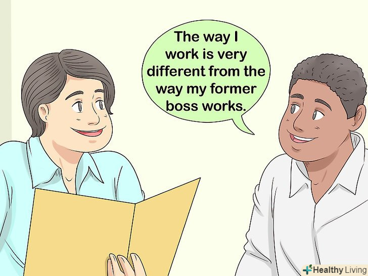 - Наприклад, не вимовляєте таких фраз: "мій начальник ставився до мене дуже погано, і я більше не міг виносити тиску з його боку, тому почав робити безглузді помилки, що і зіграло фатальну роль". Замість цього спробуйте сказати щось на кшталт: "мій стиль роботи сильно відрізнявся від стилю роботи мого колишнього начальника. Він прекрасно справлявся з цейтнотом останніх термінів виконання проектів, тоді як я вважав за краще робити свої проекти заздалегідь. З цієї причини я не завжди міг дати йому ті результати, яких він від мене чекав".