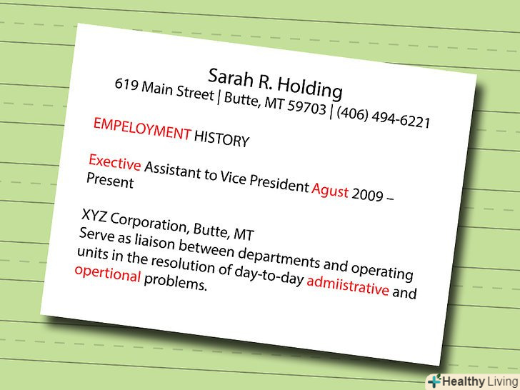 Перевірте орфографію і віднімайте ваше резюме. важливість цього кроку не можна переоцінити. Перечитайте ваше резюме кілька разів. Можливо, хтось ще може перевірити його на наявність помилок. Крім того, нехай ще одна людина, далека від вас, прочитає ваше резюме. Орфографічні та граматичні помилки в резюме виключать вас зі списку претендентів незалежно від ваших навичок і досвіду.- Звертайте особливу увагу на орфографічні та граматичні помилки, невірну контактну інформацію, друкарські помилки, синтаксичні помилки.