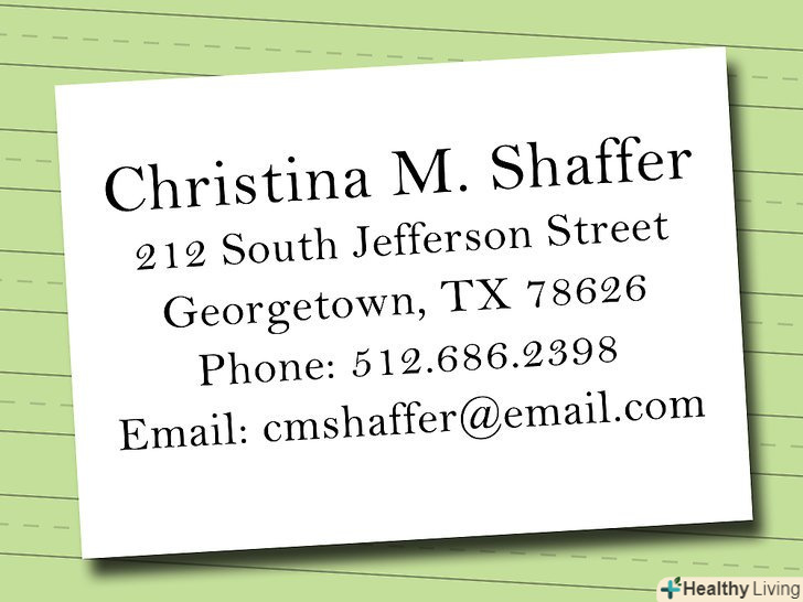 Створіть заголовок. це розділ у верхній частині вашого резюме, в якому вказана ваша контактна інформація, включаючи ім'я, адресу, електронну адресу та номер телефону. Наберіть ваше ім'я шрифтом трохи більшого розміру-14 або 16 пт. Якщо у вас є мобільний телефон, вкажіть і його номер.