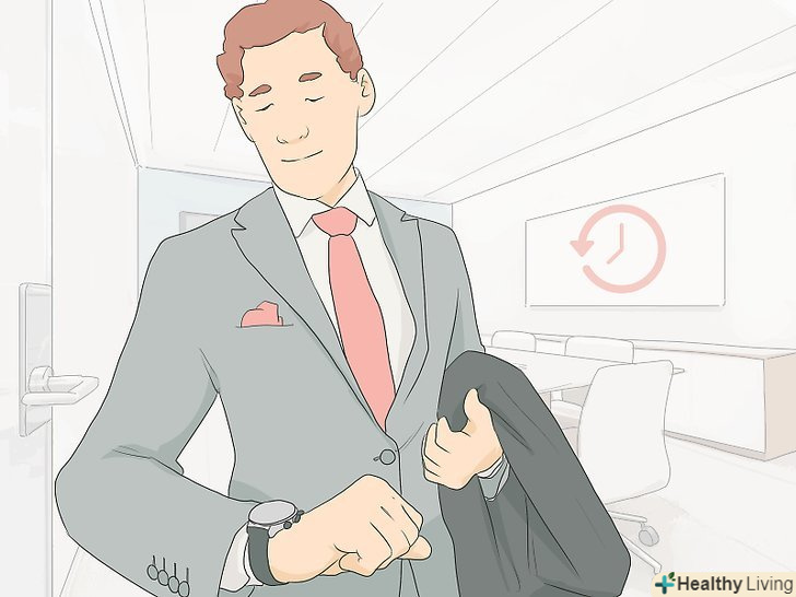 Виходьте з дому раніше, щоб бути на місці раніше зазначеного часу. коли виберете оптимальний маршрут до офісу і дізнаєтеся тривалість шляху, визначте час виходу з дому. Плануйте час із запасом, щоб не запізнитися через можливі пробок і показати свою пунктуальність. [9]- Бажано приїхати не раніше, ніж за 5-10 хвилин.