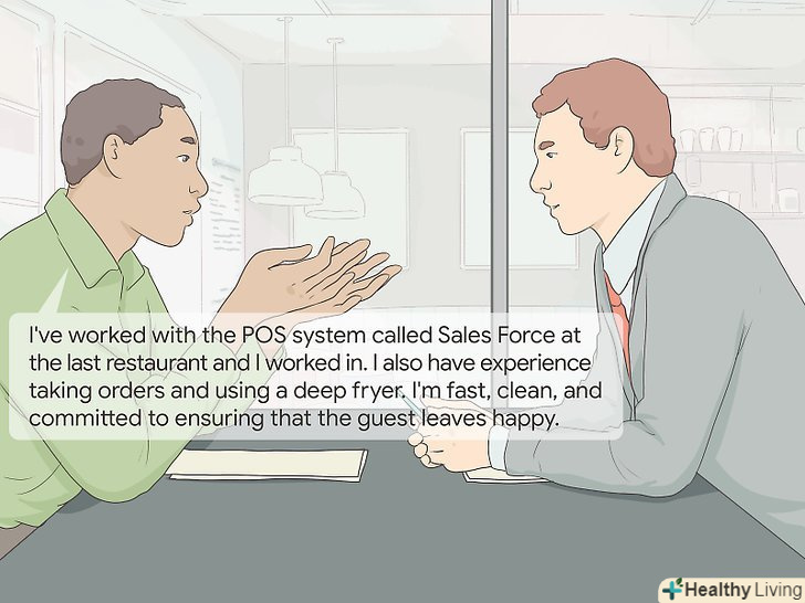 Спробуйте пов'язати особисті якості з вимогами до кандидата. при обговоренні особистих тем зв'яжіть їх з навичками, які необхідні для виконання службових обов'язків на потенційній посаді. Так ви не тільки розкажіть про себе, але також продемонструєте свої здібності і досвід. [1]- Можна розповісти, як ви самостійно вивчили іноземну мову або навчилися грати на музичному інструменті, щоб продемонструвати здатність набувати нових навичок.