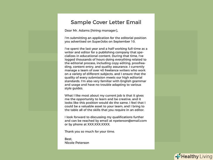 Напишіть мотиваційний лист. у більшості випадків достатньо резюме, але в деяких вакансіях міститься вимога надати мотиваційний лист. Заздалегідь складіть один чернетку, який можна буде пристосувати під конкретні вакансії. Хороший мотиваційний лист описує ваш досвід і кваліфікацію. Використовуйте конкретні приклади, щоб описати, чому саме ви підходите на посаду. [9]- Можливо, в посадовому описі вказано співробітник, які вміє працювати в колективі. Наприклад, можна написати, як ви керували спільним проектом, коли проходили стажування.