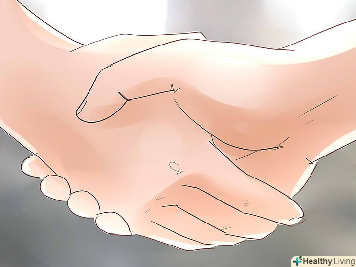 Попрацюйте над рукостисканням. правильне рукостискання принципово важливо. Це ваша перша можливість справити позитивне враження.- Рукостискання не повинно бути ні млявим, Ні занадто сильним. Обидва ці варіанти можуть налаштувати людину проти вас. [14]