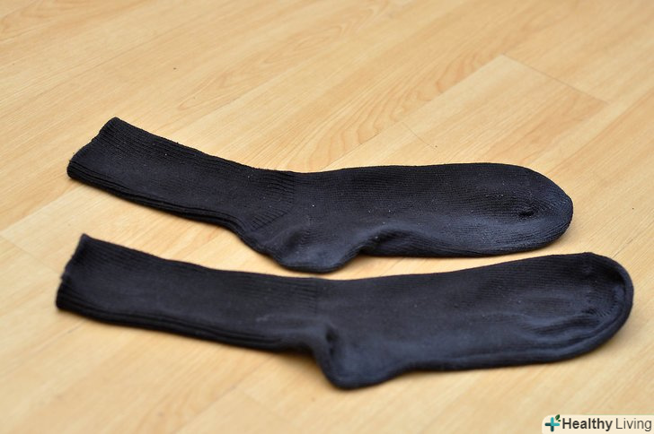Одягніть солідні вертикально-ребристі шкарпетки чорного або сірого кольору. виберіть шкарпетки досить високі, щоб вони могли закривати ваші ноги, коли ви сідаєте в костюмі.