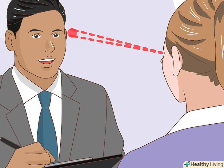 Залишайтеся зосередженим. дивіться куди-небудь за голову співрозмовника вас людини, на що ви можете зосередити вашу увагу.- Навіть якщо все злегка розмито, це буде для вас свого роду безпечною зоною - ви будете здаватися зосередженим на співрозмовнику, хоча при цьому вам не доведеться підтримувати з ним постійний зоровий контакт.