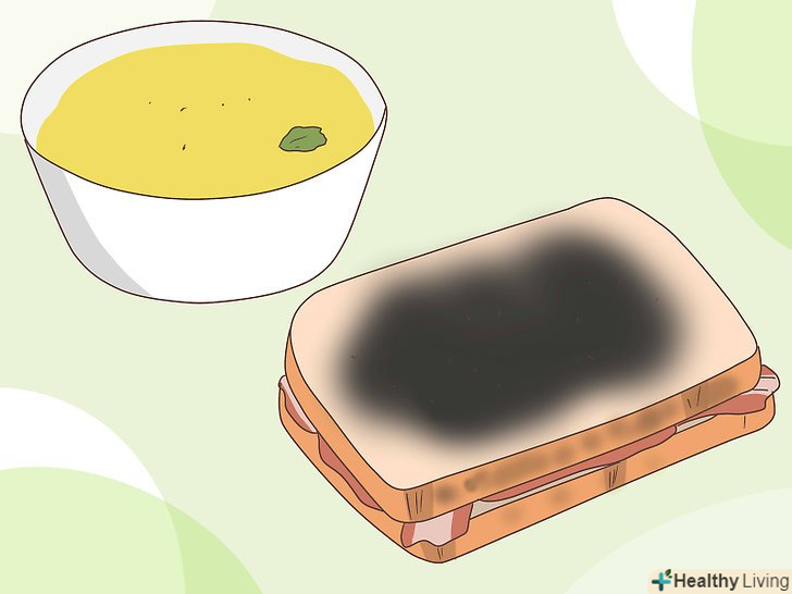 З'їжте сніданок "проти похмілля". сендвіч з беконом (з смаженим тостом) і тарілка бульйону підійдуть.- Тост - це підвищення рівня цукру в крові, вуглець (в підгорілої частини) допоможе відфільтрувати всяке в вашому шлунку - на манер активованого вугілля. Саме через цю його особливості жертвам алкогольного отруєння промивають шлунок розчином вугілля.