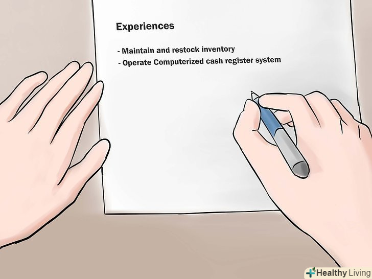 Подумайте, як подати свій попередній досвід, навіть якщо ви безробітний. не бійтеся подавати заявку, якщо у вас зараз немає роботи. Просто розкажіть роботодавцю про відповідні навички, здобуті на попередніх місцях і під час навчання.- Знову ж таки, якщо це робота, в якій у вас немає досвіду, зосередьте увагу в резюме на тому, що ви швидко оволодіваєте новими навичками. Також вкажіть, чим корисним ви займалися під час безробіття, наприклад, волонтерством або хобі.