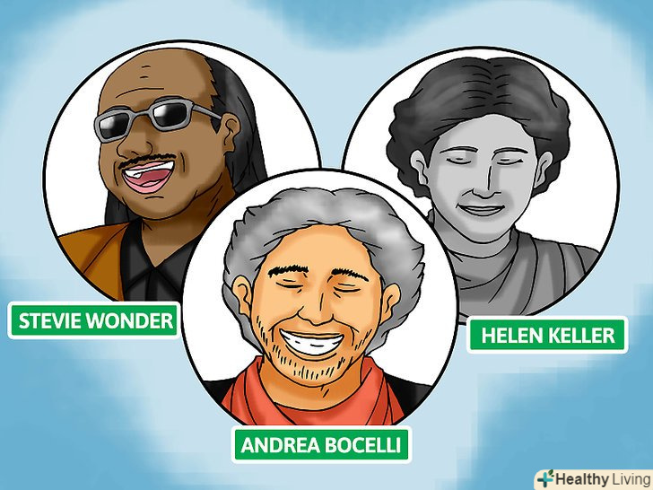 Вивчайте історії успіху незрячих людей. [10] не можна здаватися ні за яких обставин. Проблеми із зором створюють певні складнощі, але історії відомі сотні прикладів незрячих людей, які досягли успіху всупереч усьому. Багато хто з них використовували свою сліпоту як мотивацію досягти успіху іншим способом. Не дозволяйте частковим обмеженням стримувати ваші таланти.