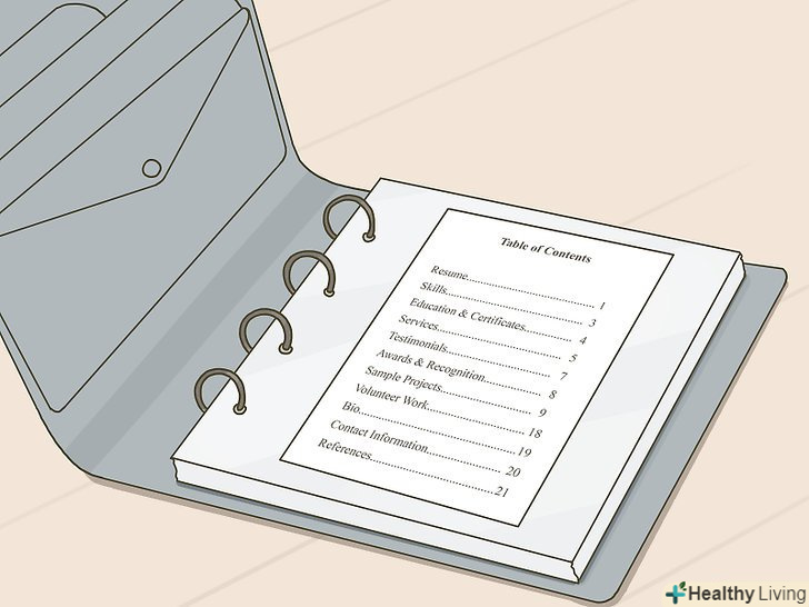 Прихопіть з собою копії резюме і портфоліо (якщо є). у рекрутера, ймовірно, буде на руках ваше резюме або супровідний лист до нього, але наявність у вас на руках копій цих документів продемонструє вашу хорошу підготовку. Візьміть з собою на співбесіду папку з декількома ксерокопіями резюме і супровідного листа до нього (просто про всяк випадок). Додатково принесіть з собою копію робочого портфоліо, якщо його наявність характерна для тієї галузі, в якій ви спеціалізуєтеся. [8]- Наприклад, на співбесіду можна принести портфоліо своїх дизайнерських проектів. З іншого боку, вам навряд чи знадобиться портфоліо, якщо ви збираєтеся проходити співбесіду на місце медсестри або бариста.