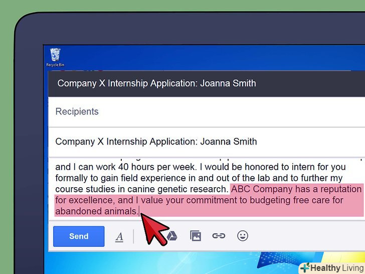 Вивчіть діяльність і структуру компанії. перш ніж проситися на стажування, Витратьте час на вивчення компанії, в якій ви хотіли б працювати. Відвідайте веб-сайт. Прочитайте різні новинні статті про дану організацію. Якщо компанія просуває якийсь продукт (наприклад, соціальну мережу), то постарайтеся знайти час на використання даного продукту протягом тижня і протестуйте його якість. Викладіть в листі власні ідеї. Потенційні роботодавці цінують тих кандидатів, які щось знають про їхню компанію і можуть логічно цілісно продемонструвати свої знання. [3]