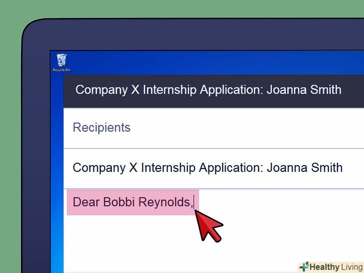 Визначтеся, хто буде одержувачем вашого листа. чи є на брошурі з пропозицією про стажування ім'я контактної особи? Якщо так, то використовуйте ім'я та адресу електронної пошти цієї людини. Якщо Контактна особа не вказана, то зателефонуйте в компанію і дізнайтеся про те, хто займається вирішенням питань про стажування. Якщо цим ніхто не займається, то адресуйте свій електронний лист начальнику відділу кадрів підприємства. Якщо ви вже встигли поспілкуватися з кимось, хто вже працює в організації, то ви можете згадати про це на початку свого електронного листа.- Якщо вам не вдалося знайти ім'я будь-якого співробітника, то адресуйте електронного листа «шановним панам або співробітникам».