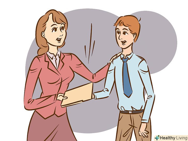 Побудуйте міцні стосунки з колегами. Один із способів розбитися в коржик і догодити начальнику – побудувати міцні відносини з колективом. Вам не потрібно бути з ними кращими друзями або постійно тусуватися разом поза роботою, але ви повинні бути доброзичливі до них і докласти зусиль, щоб трохи дізнатися їх. Якщо у вас репутація замкнутої людини, що не відкривається нікому, тоді ваш начальник подумає, що ви дбаєте тільки про себе.- Навіть якщо ви насправді зайняті поза роботою або занадто сором'язливі, вам не буде коштувати великих зусиль посміхнутися колегам, трохи поговорити, запитати про їх сім'ях, відпустках або домашніх тварин.