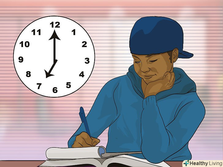 Встановіть постійний час для виконання домашньої роботи. діти прогресують, коли у них є заведений порядок. Це рішення можна обговорити разом з вашою дитиною. Оцініть кількість часу, необхідний для виконання домашнього завдання. Не забудьте взяти до уваги регулярні, заплановані заходи, наприклад, спортивні тренування або похід до церкви (якщо ви релігійні). [2]- Наприклад, ваш підліток ходить на тренування з футболу відразу після школи. Він повертається не раніше 17: 00. Ваша сім'я вечеряє о 18: 00. Тому найкращий час для виконання домашнього завдання — 19:00.