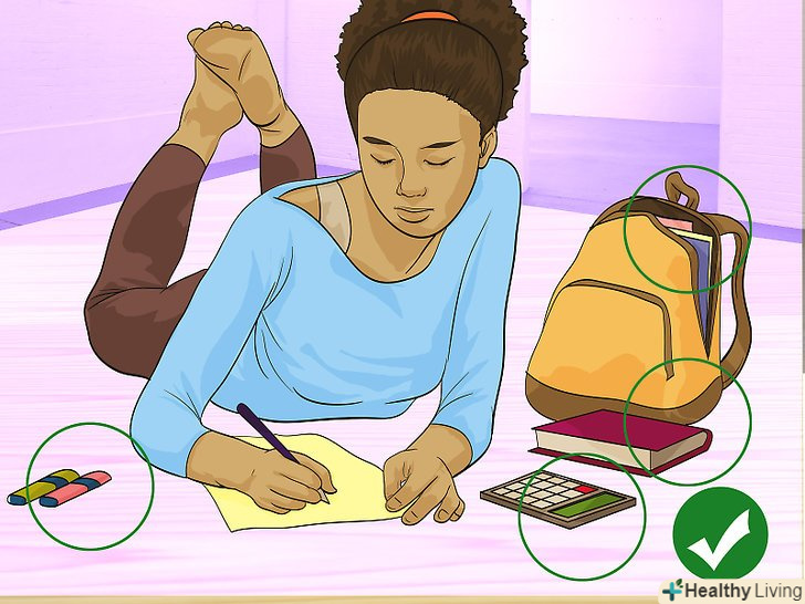Створіть належну обстановку. визначте відповідне місце, де підліток буде виконувати домашнє завдання. Ця повинна бути вільна від відволікаючих факторів обстановка, тому спальня навряд чи стане кращим вибором. Переконайтеся, що вся електроніка вимкнена або переведена в беззвучний режим. Крім того, попередьте всіх членів сім'ї, включаючи молодших дітей, залишити підлітка в спокої на необхідну кількість часу. [1]- Якщо дитина буде робити домашнє завдання за кухонним столом або письмовим столом в кабінеті або вітальні, у нього буде достатньо місця для виконання завдань.