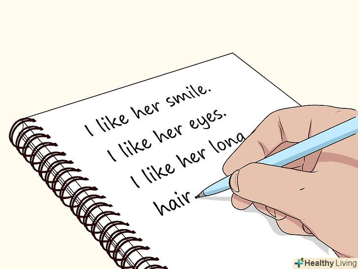 Складіть список всіх речей, які вам подобаються в цій людині. випишіть всі позитивні якості потенційного коханого. Складіть ще один список всього, що Вас в ньому дратує. Повинно бути щось, що вам в ньому не подобається. Бути закоханим-значить усвідомлювати, що людина неідеальний, але все одно сходити по ньому з розуму. [3]- Часом тільки час може показати, чи дійсно вам небайдужа людина такою, якою вона є, або ж ви підкорені її ідеалізованим чином.
