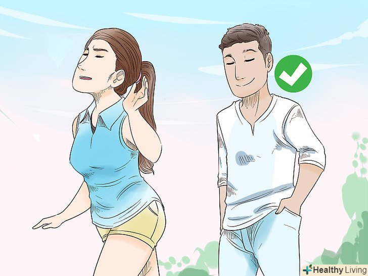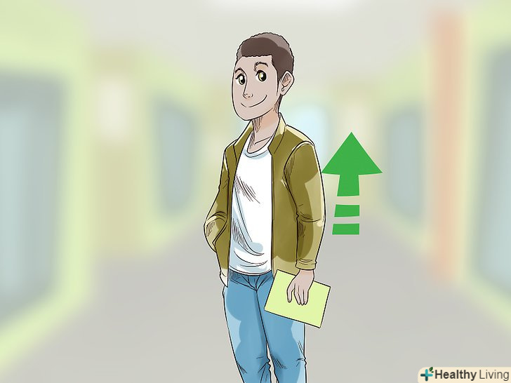 Тримайте поставу. положення вашого тіла також буде вказувати на вашу впевненість. Якщо ви будете сутулитися або схрестіть руки, вона може інтерпретувати це як ознака страху або нервозності. Замість цього, встаньте прямо, руки залиште вільно звисати з боків. Відведіть плечі трохи назад, а груди вперед. Так ви будете виглядати куди привабливіше, ніж, якщо будете сутулитися. [9]