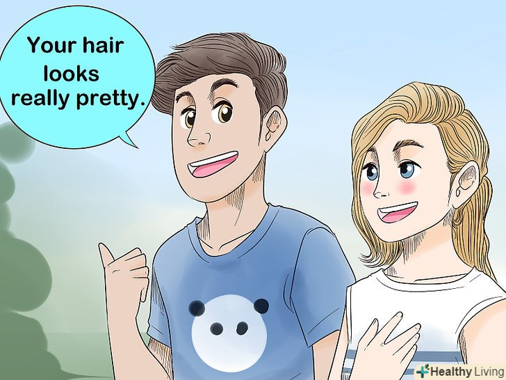 Робіть їй компліменти. робіть їй компліменти щиро. Ви можете сказати: "Ти виглядаєш приголомшливо в цьому платті!"або"у вас дійсно гарне волосся". Що б ви не вибрали, робіть компліменти прямо і дивіться їй в очі. [15]- Робіть компліменти завжди. Але не хваліть тільки її зовнішній вигляд. Її інтелект, почуття гумору та інші таланти також вимагають вашої уваги. Наприклад, скажіть щось на кшталт:"я дійсно захоплююся твоїми успіхами в легкій атлетиці".