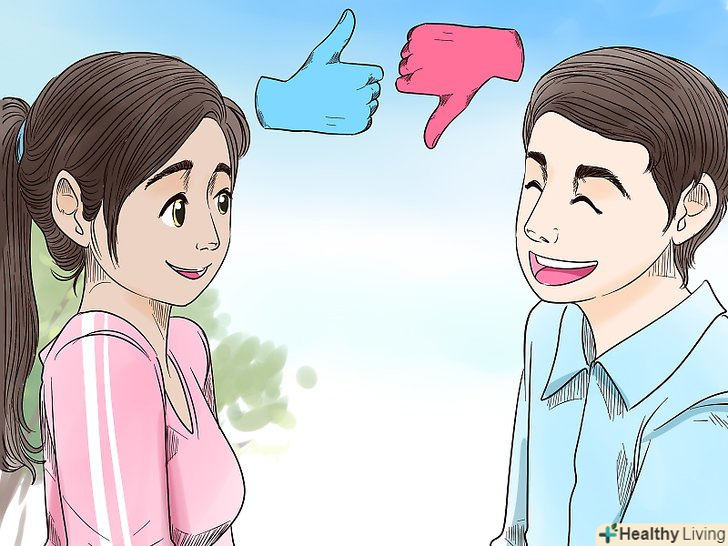 У перший час говорите про прості речі. коли ви вперше знайомитеся з дівчиною, яка Вам подобається, Ви повинні бути обережні, щоб не зачіпати занадто особисті теми. Говоріть про те, що не поставить її в незручне становище. Наприклад, ви можете запитати про її улюблену музику, фільм або хобі. [16]- Уникайте обговорення тем, які могли б бути незручні для неї (ваші колишні подруги, сімейні конфлікти або релігія). Замість цього зосередьтеся на питаннях, які допоможуть вам дізнатися її краще. Запитайте про її симпатії і антипатії, її друзів і сім'ї, її інтереси і так далі.