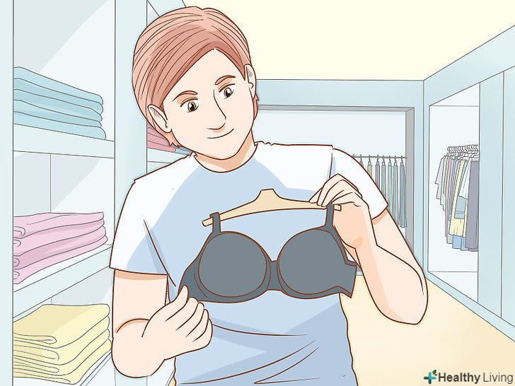 Почніть носити бюстгальтер. коли почне рости груди, у вас може з'явитися бажання носити бюстгальтер. Зверніться за допомогою до мами або іншої жінки, якій ви довіряєте, щоб вибрати свій перший бюстгальтер. [18]- Для занять спортом може знадобитися інший бюстгальтер з додатковою підтримкою.
