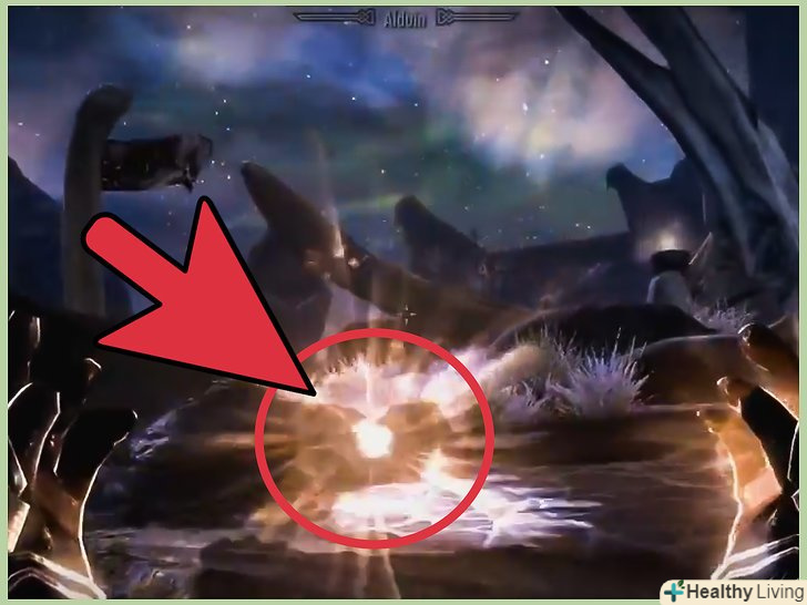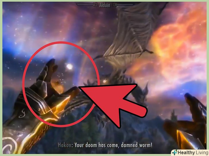 Використовуйте крик "Чисте небо".у Алдуїна є свої крики, які обрушують метеоритний дощ на землю. Якщо це сталося, ви можете зупинити дію крику дракона чистим небом.- Вас навчать цьому крику Сивобороді перш, ніж вам буде дозволено зійти на гору, так що цей навик ви не пропустіть.
