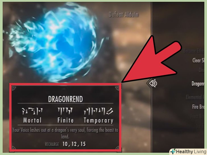 - Якщо ви знаєте крик "смертний вирок", то він значно збільшить шкоди від ваших заклинань, але найкраще часто використовувати Драконобой, щоб Алдуїн залишався на землі.