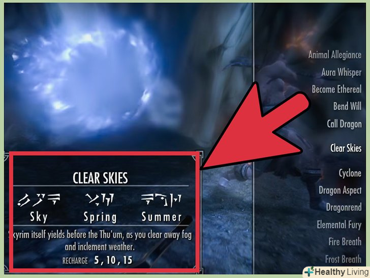 Використовуйте крик "Чисте небо" три рази.Ваші NPC-компаньйони автоматично використовуватимуть той же крик, коли ви почнете розчищати туман Алдуїна. Дракон буде напускати туман, поки ви тричі не прокричите"Чисте небо".