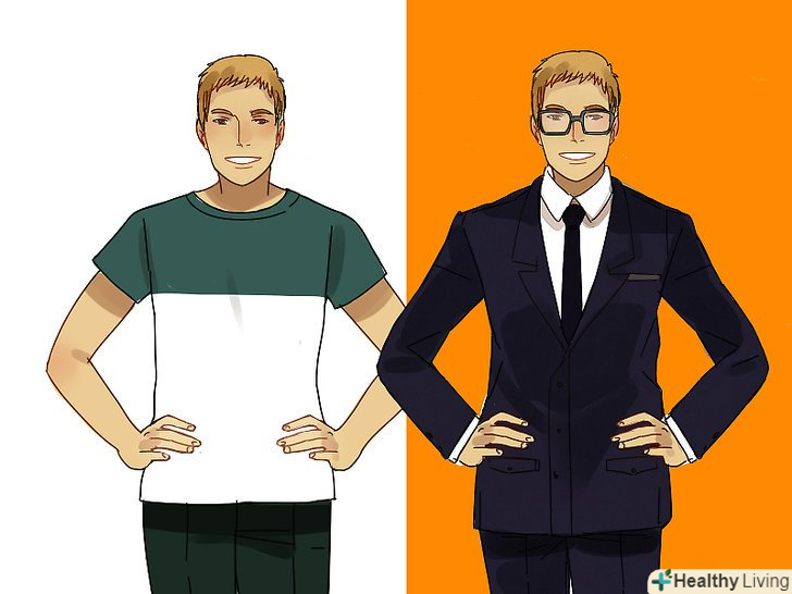 Знайте, як інші сприймають вас. є різниця між дозволом чужому судженню впливати на вашу самооцінку і знанням того, як ви представляєтеся іншим. Що ви повинні робити, це знати, як виглядаєте з точки зору іншої людини. У плані зовнішнього вигляду: остерігайтеся застрягла в зубах їжі, несвіжого дихання, неприємного запаху тіла, прилип до взуття туалетного паперу і так далі. У плані самовладання: будьте усміхнені, сидите / стійте з прямою спиною (так, ви виглядаєте і відчуваєте себе більш впевнено), багато посміхайтеся, будьте ввічливі, уважні і так далі.- Слідкуйте за мовою вашого тіла; знаючи, що він означає, Можна краще себе уявити.