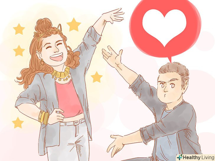 Працюйте над впевненістю в собі. Якщо ви потрудитеся над своїм зовнішнім виглядом, будете любити те, чим займаєтеся, і почнете цінувати себе, ваша впевненість в собі моментально зміцниться. Якщо ви впевнені в собі, і вам комфортно бути собою, хлопець швидше визначиться зі своїми почуттями до вас. [4] щоб ваша впевненість в собі була помітна іншим, будьте готові постояти за себе і час від часу сміятися над собою.- Пам'ятайте, що бути впевненою в собі і бути зарозумілою — це різні речі. Якщо ви постійно будете говорити про те, як ви прекрасні, це відштовхне людей.
