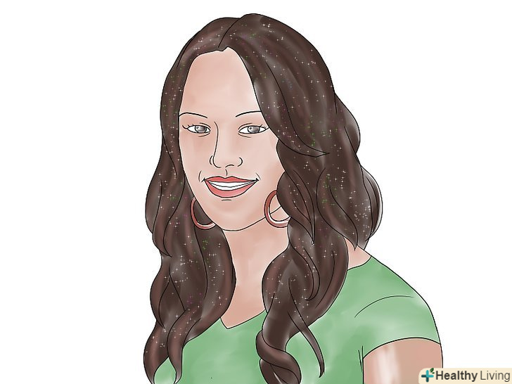 Розпиліть на волосся деяку кількість спеціального спрею, який надає волоссю блиск або нанесіть на волосся деяку кількість блискіток, так щоб Ваше волосся блищало на сонці.