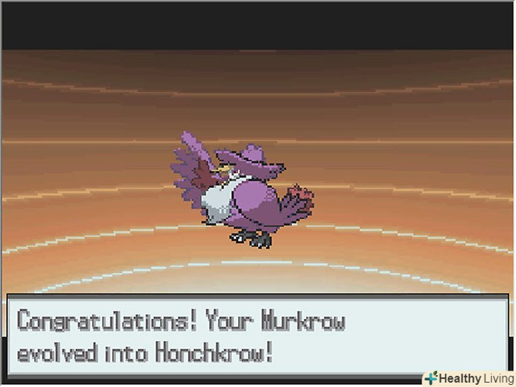 Эволюционируйте Murkrow.виберіть Murkrow зі списку покемонів і натисніть на кнопку A, щоб підтвердити використання Dusk Stone. Ваш Murkrow еволюціонує в Honchkrow.- Не скасовуйте еволюцію, інакше ви даремно використовуєте знайдений камінь.