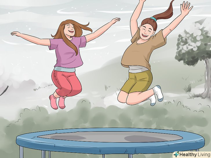 Вийдіть на вулицю, якщо живете в приватному будинку і якщо вам дозволять батьки. пострибайте на батуті, пограйте в догонялки з ліхтариком, побігайте колами, влаштуйте змагання або поплавайте в басейні на задньому дворі вночі (з дозволу батьків). Холодне повітря допоможе вам підбадьоритися. [13]