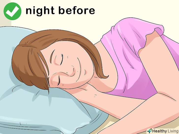 Поспіть максимально довго за ніч до події. Якщо ви зробите це, ви будете готові до безсонної ночі. Подрімайте після обіду або пізно встаньте з ранку. По можливості поспіть хоча б 12 годин напередодні або подрімайте до приходу друзів. [2]
