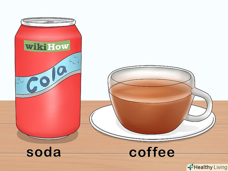 Пийте каву або кофеїновмісні напої. якщо ви не любите каву, пийте газовані напої, наприклад Red Bull, Dr. Pepper, Monster, Mountain Dew і Coca Cola. Крім того, спробуйте змішати гарячий шоколад з розчинною кавою і молоком. [3]