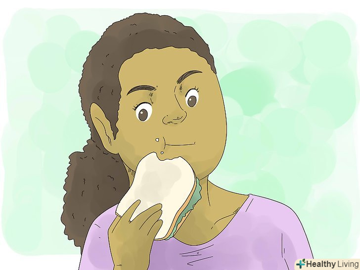 Щоб підбадьоритися, їжте високоенергетичну їжу. у деяких продуктах міститься більше енергії, ніж в інших. Якщо ви збираєтеся не спати всю ніч, вашому організму буде потрібно достатньо палива, тому не пропускайте прийоми їжі.- Їжте що-небудь, в чому містяться білки, харчові волокна або складні вуглеводні. Наприклад, можна з'їсти бутерброд або гранолу (вівсянку з горіхами, медом і фруктами) і випити склянку молока. Слід також пити побільше води. Якщо ви хочете залишатися бадьорим, подбайте, щоб ваш організм не відчував нестачі рідини. [7]