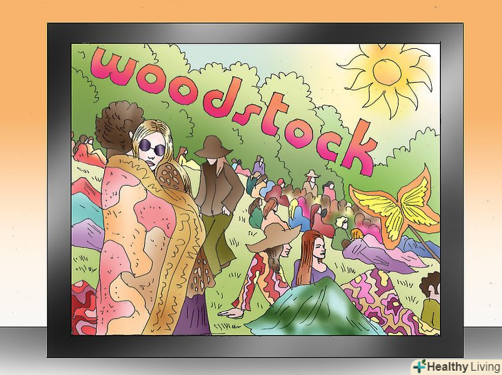 Почніть з музики. послухайте музику, яка сформувала ціле покоління. Відправляйтеся в найближчий музичний магазин або в Інтернет і купіть запис, який розповість вам про три дні любові — які стали кульмінацією музичної культури хіпі, - фестивалі Вудсток .- Послухайте Джимі Хендрікса і його версію гімну США («Star Spangled Banner»), Джо Кокера і його групу, а також пісню «Fish Cheer» колективу Country Joe and the Fish, що користується популярністю і зараз.