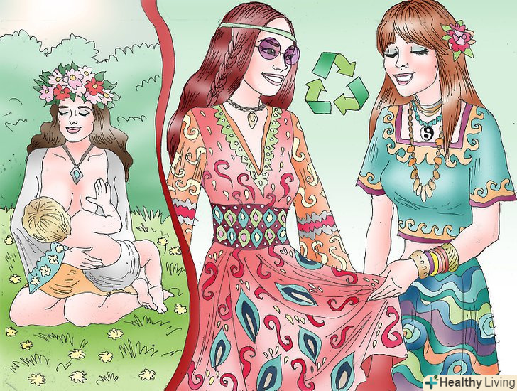 Спробуйте жити відповідно до ідеалів хіпі. намагайтеся якомога менше забруднювати землю. Хіпі люблять землю, і вони роблять все можливе, щоб не завдавати їй шкоди. Купуйте одяг і товари, які можна піддати вторинній переробці і які не шкодять середовищу.- Станьте волонтером, дізнайтеся більше про Бартер. Хіпі 60-х воліли обмін і бартер, а не гроші.
