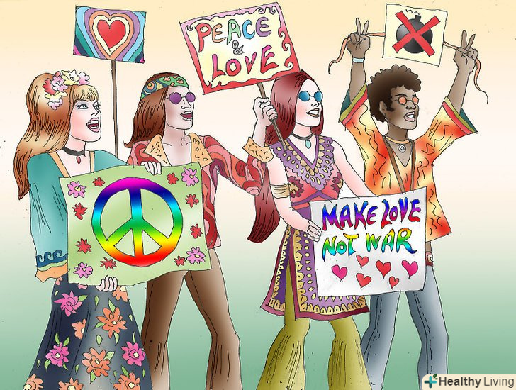 Намагайтеся зробити світ кращим. Протестуйте проти речей, що загрожують життю (наприклад, проти воєн), і прагніть створити більш ліберальне суспільство: виступайте за захист прав гомосексуальних людей і за легалізацію деяких наркотиків.- Багато хіпі вважають, що заборона наркотиків приносить більше шкоди, ніж вживання цих речовин. Вивчіть інформацію про історію заборони наркотичних речовин у своїй країні.