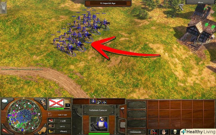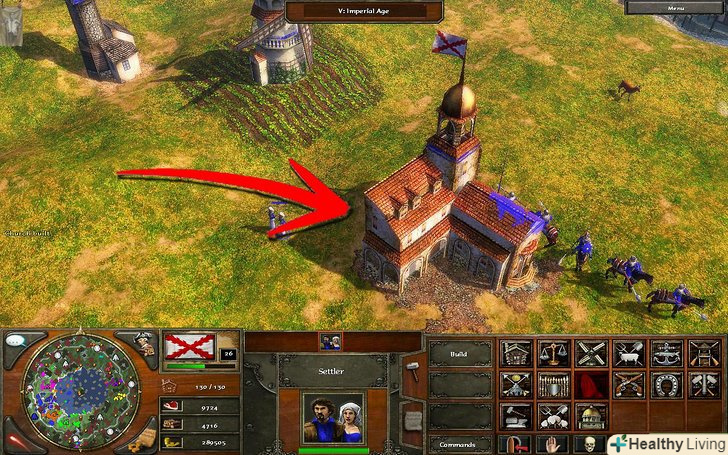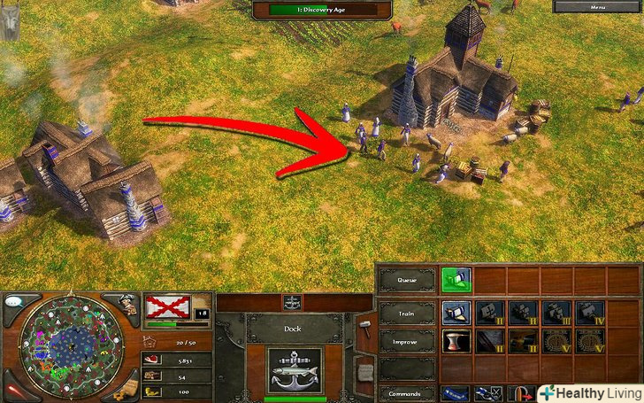 Постарайтеся побудувати трохи піхоти і поліпшити юніти, якими користуєтеся.підтримуйте вашу економіку і не зволікайте при будівництві нових поселенців. У вас повинно бути два поля з 10 поселенцями на кожному, щоб у вас не закінчилася їжа. Постарайтеся мати багато поселенців, які збирають деревину, тому що ви не зможете добути її також швидко, як інші ресурси. На золото видолжни відправити від 10 до 15 поселенців.