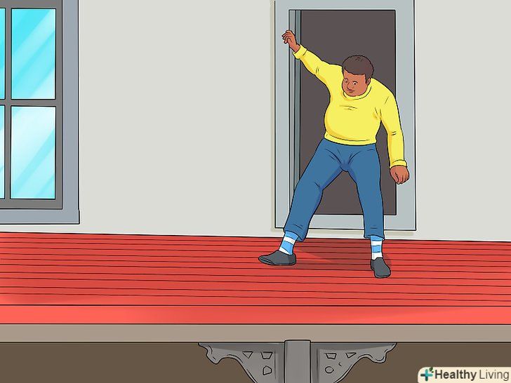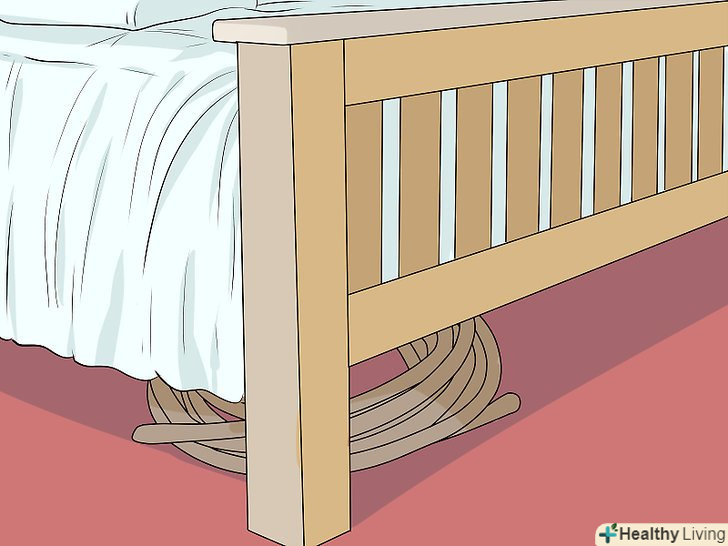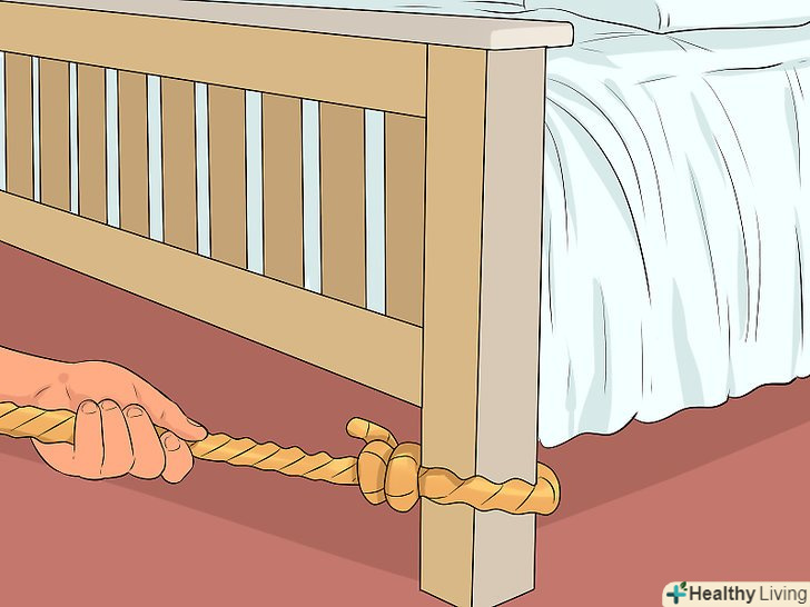 Прив'яжіть мотузку до чогось досить важкого і міцного, що витримає вашу вагу. це може бути важкий каркас ліжка, ніжка міцного столу або книжкової шафи тощо. До чого б ви не прив'язали мотузку, переконайтеся, що це те, що не зрушиться з місця через вашу вагу. Зробіть подвійний вузол, коли будете прив'язувати мотузку до міцних меблів.- Об'єкт, до якого ви прив'язуєте мотузку, повинен важити значно більше, ніж ви, щоб витримати вашу вагу. Щоб переконатися, що об'єкт витримає вашу вагу, спробуйте зрушити його, доклавши максимум зусиль. Якщо не вийде, то, швидше за все, він зможе витримати вашу вагу.