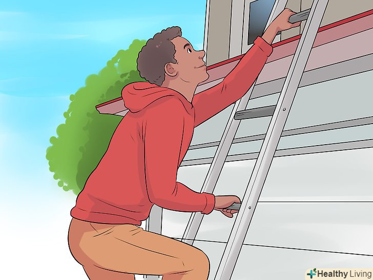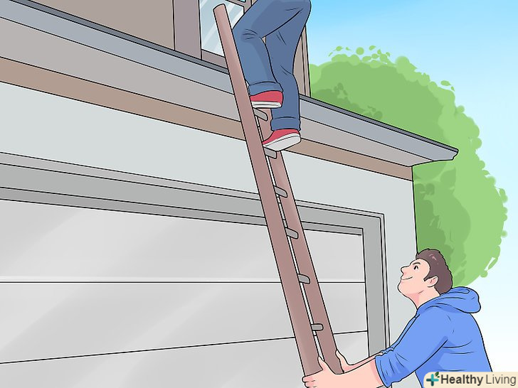 - Переконайтеся, що сходи досить висока, щоб дістати до вікна другого поверху. [2]