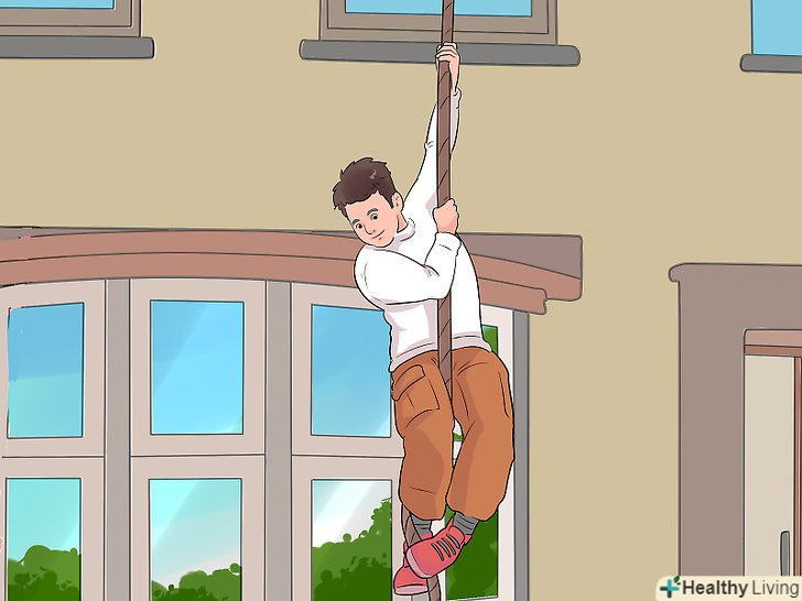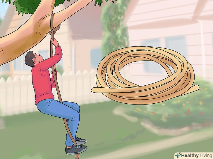 Знайдіть міцну мотузку, яка витримає вашу вагу. пошукайте товсту мотузку, яка не порветься, коли ви будете по ній спускатися. Можна перевірити мотузку, повісивши її на що-небудь стійке, наприклад, дерево, і погойдатися на ній. Пошукайте мотузку в підвалі або гаражі. В іншому випадку сходіть в будівельний магазин.