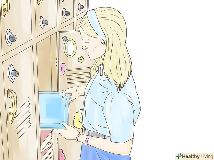 У вашому шафці повинен бути порядок, а він сам – висловлювати вашу індивідуальність. при бажанні повісьте туди дзеркало на магніті або пару картинок. Складіть свої книги за розкладом. (Якщо перший урок-Англійська, покладіть підручник з англійської зверху). Вам потрібно зібратися, немає часу на те, щоб валяти дурня.- На випадок екстрених ситуацій Зберігайте прокладки в глибині свого шафки.