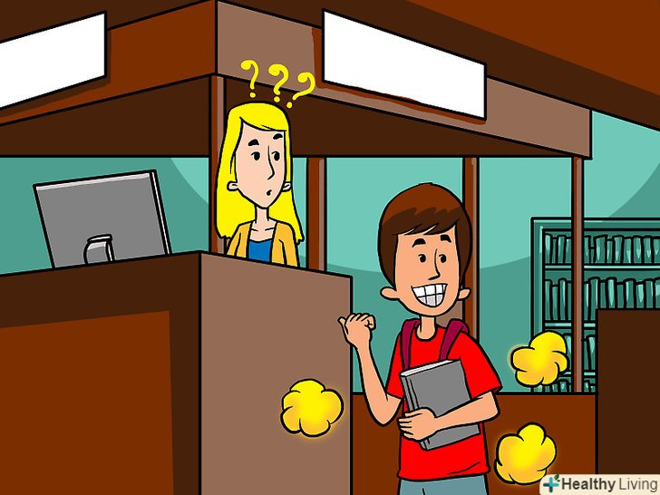 Попрямуйте до столу бібліотекаря і пукніть в сторону людини за столом. він нічого не зрозуміє, а це може врятувати вас від жахливого сорому.