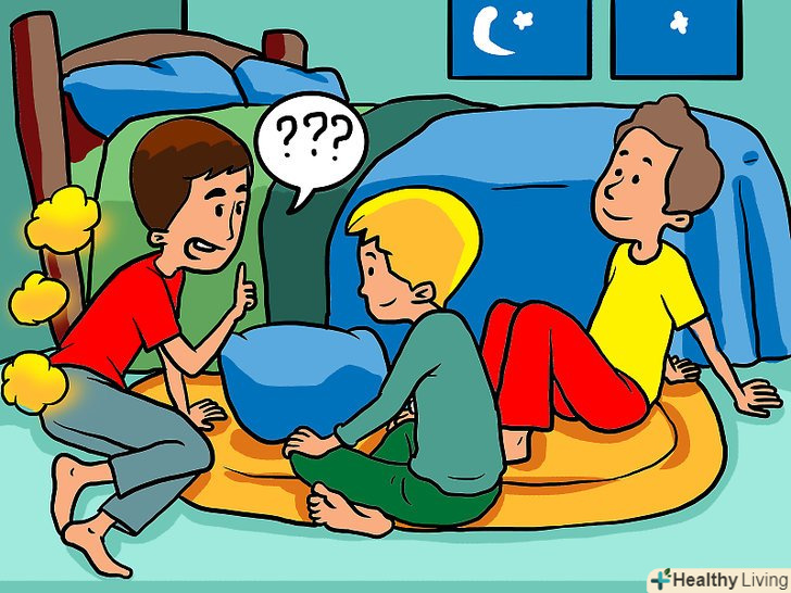 Коли ви будете спати, постарайтеся пукнути так, щоб ніхто не помітив. якщо у друга, у якого Ви залишилися на ніч є собака, зробіть так, що вона була поруч з вами. Після цього ви можете швидко звинуватити бідну, нічого не підозрюючу тварину. Якщо у вашого друга немає собаки, потерпіть до тих пір, поки всі не заснуть або відійдіть у вбиральню.