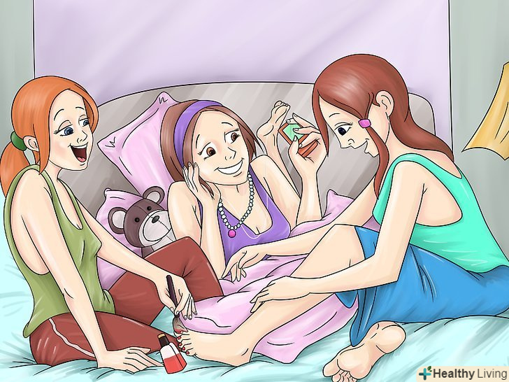 Виберіть заняття. існує нескінченне безліч речей, якими можна зайнятися на ночівлі. Ось деякі з них. Будьте поступливі у виборі і враховуйте побажання всіх гостей.- Манікюр. Поставте улюблену музику, дістаньте лак для нігтів і займіться манікюром один одного.