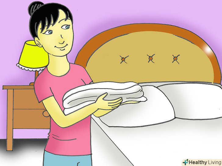 Приберіть все з ліжка. Візьміть всі подушки, м'які іграшки, простирадла, ковдри і приберіть з ліжка. Зніміть з них наволочки, підковдри, простирадла і так далі, і відправте все в кошик для білизни.