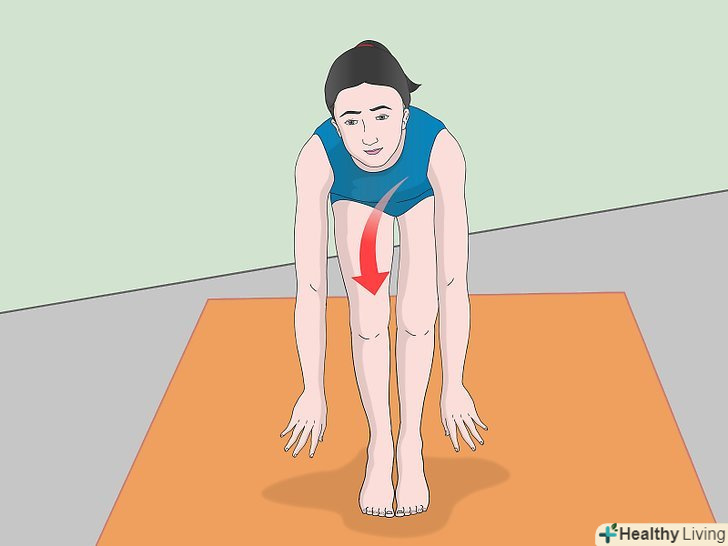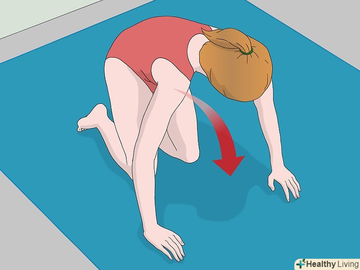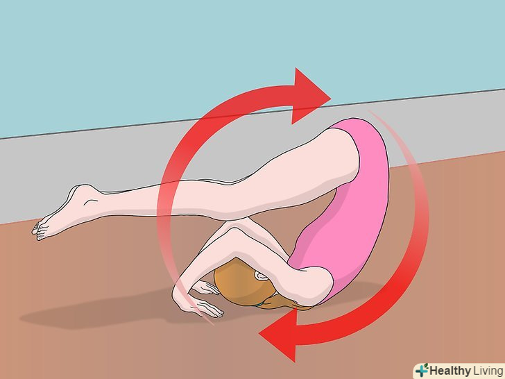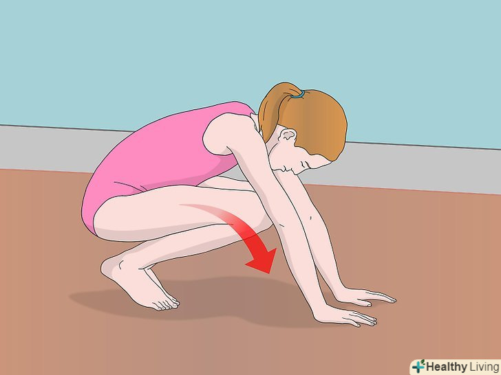 Виконайте перекид. відштовхніться ногами від підлоги. Тримайте голову притиснутою до грудей. Вона не повинна торкатися підлоги. При виконанні цієї вправи ваша спина повинна бути зігнутою, а ноги зведені разом. Використовуйте руки в якості опори і для додаткового поштовху. [18]