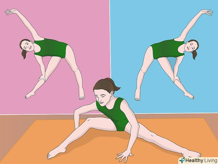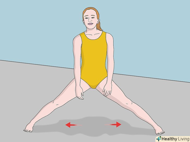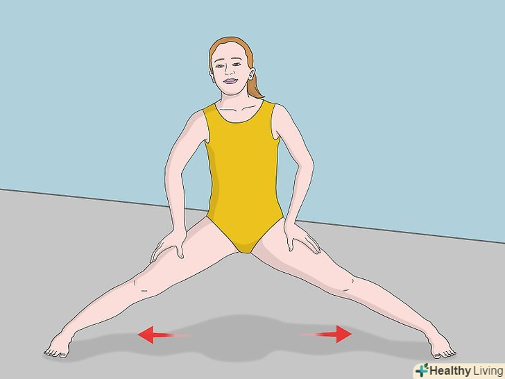 Повільно пересуньте ноги ще далі в сторону. відсуньте ноги ще далі один від одного. До тих пір, поки ви не натренуєтеся, виконувати цю вправу варто поступово. Не згинайте ноги в колінах. Якщо ви відчуєте біль, негайно припиніть вправу. Якщо ви переборщите з розтяжкою, це може привести до травми. [13]