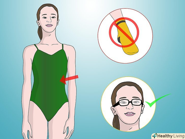 - Надягайте окуляри тільки в тому випадку, якщо це спеціальні спортивні окуляри, які не будуть з вас спадати. В іншому ж випадку покладіть їх в безпечне місце, де вони будуть лежати в цілості. [4]